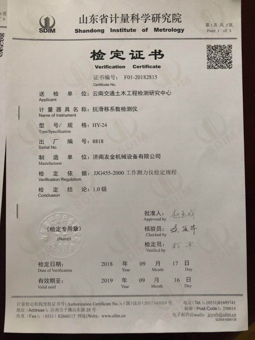 • 產(chǎn)品檢定證書1