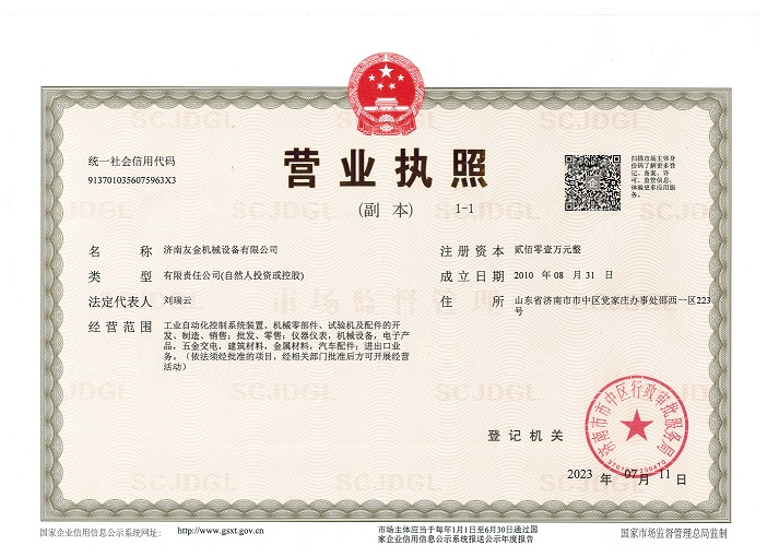 濟(jì)南友金機(jī)械設(shè)備有限公司 地址:濟(jì)南市市中區(qū)黨家辦事處邵西一區(qū)223號(hào)  電話:0531-85895266 傳真:0531-87926347